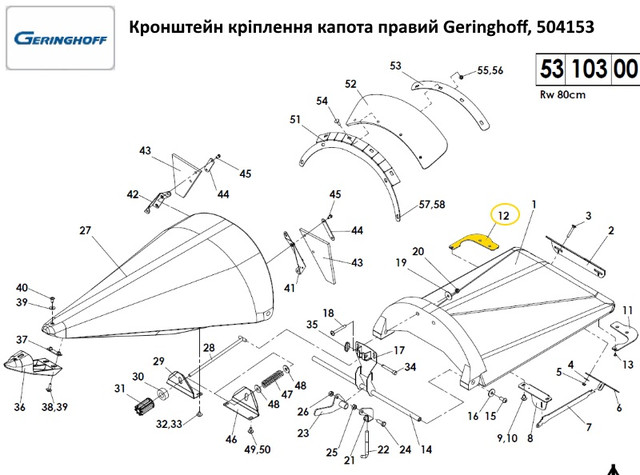 Кронштейн кріплення капота правий Geringhoff Rota Disc, MS, 504153