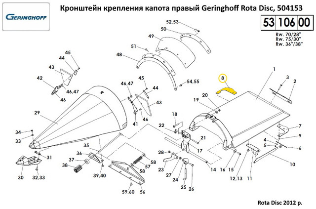 Кронштейн крепления капота правый Geringhoff Rota Disc, 504153