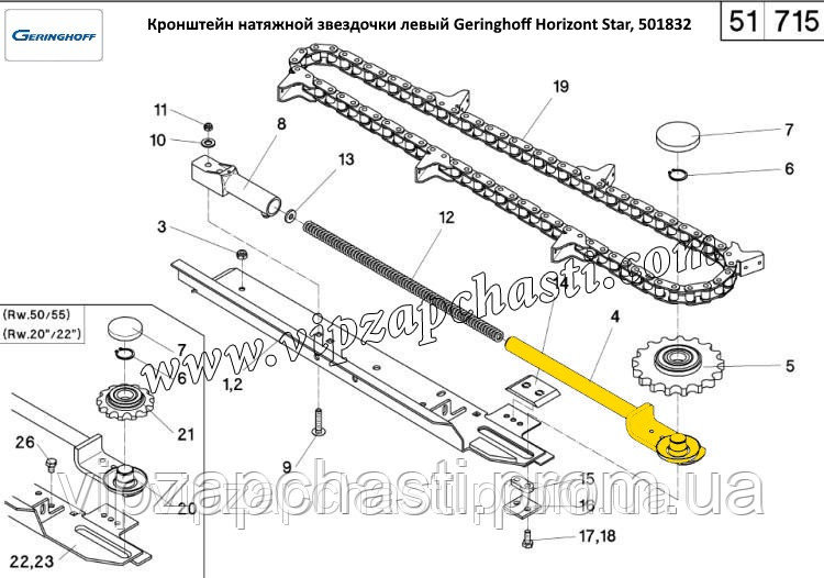цепи в сборе Z=13 - Pos. 7+21 - Rw 50/55/20"/22"