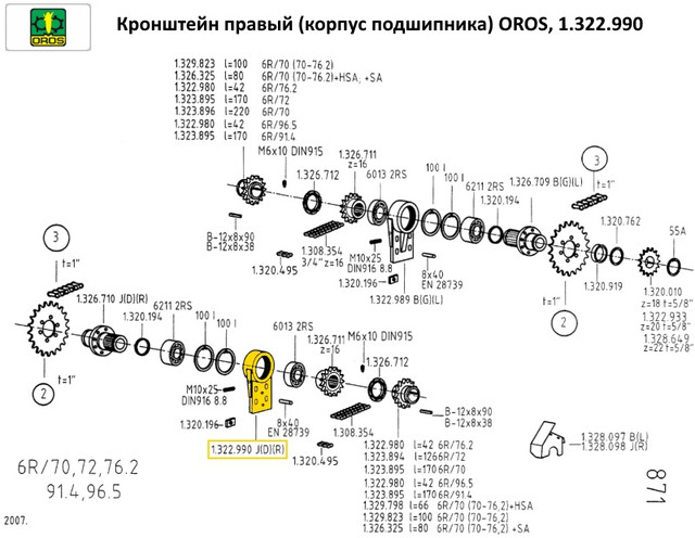 звездочка z-16, l-100 6R/70 (кукурузная жатка OROS)