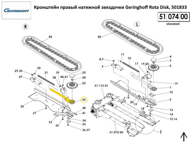 Натяжитель звездочки правый Geringhoff Rota Disk, 501833​