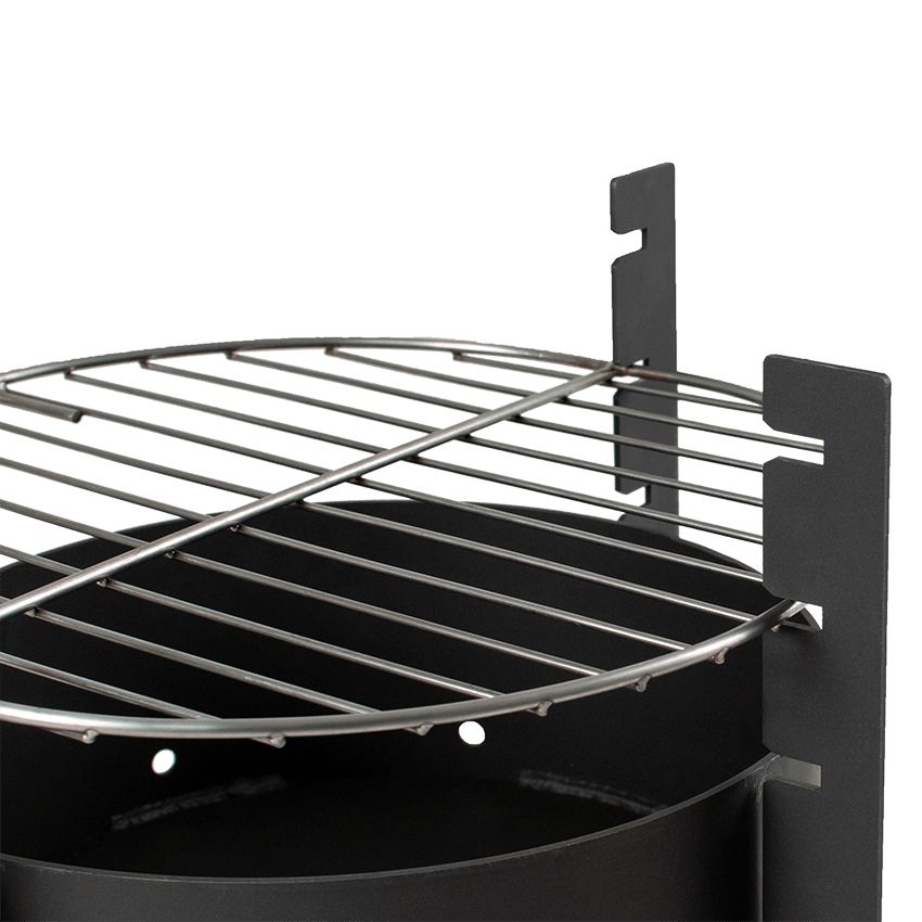 Благодаря отверстиям в верхней части конструкции можно регулировать высоту, на которой устанавливается гриль-решетка.