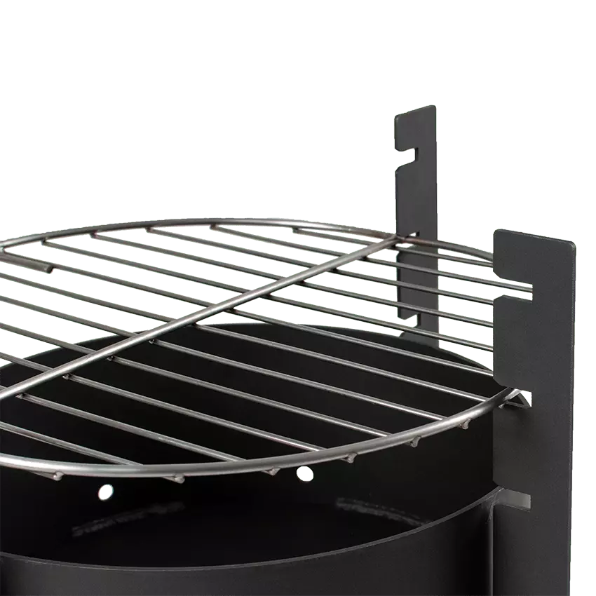 Благодаря отверстиям в верхней части конструкции можно регулировать высоту, на которой устанавливается гриль-решетка.