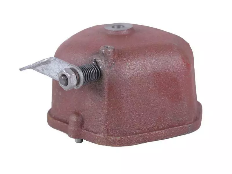 Крышка клапанов ТАТА на дизельный двигатель 180N (чугун) – деталь силового агрегата с водяным охлаждением. Предназначена для защиты элементов газораспределительной системы от механических повреждений, попадания пыли, влаги, а также утечки масла из корпуса двигателя. Деталь изготовлена из чугуна, имеет значительную толщину стенок и высокую механическую прочность благодаря внутренним ребрам жесткости. В корпус крышки встроен рычаг с валом декомпрессора, облегчающий запуск двигателя путем временного снижения компрессии в момент старта. Управление процессом декомпрессии осуществляется вручную. Крышка крепится к корпусу головки цилиндров через прокладку герметизирующую соединение.