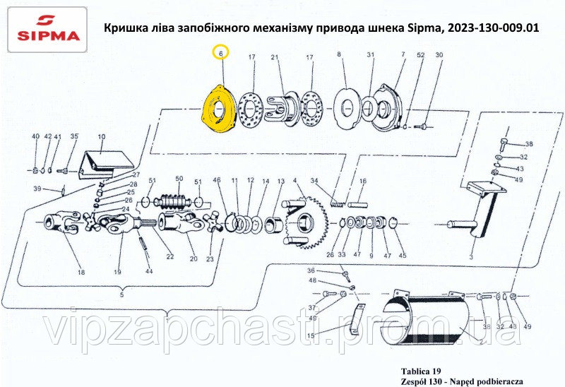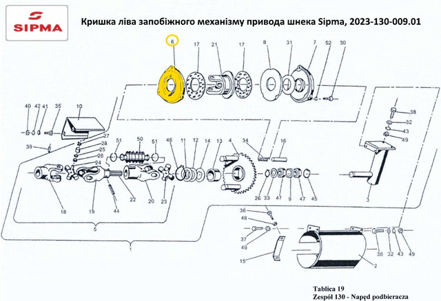 Кришка ліва запобіжного механізму привода шнека Sipma, 2023-130-009.01