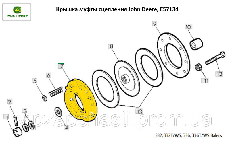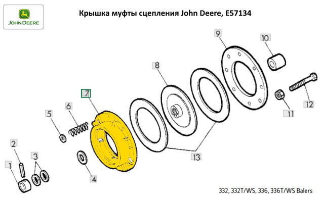 7 - Clutch - 1 - Part Number : E57134 - Models : 332, 336 - Remarks : (SUB FOR E38906)