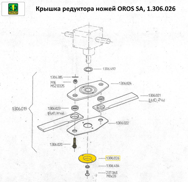 Крышка редуктора ножей жатки OROS SA, 1.306.026