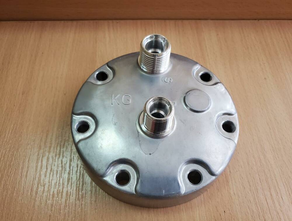 Крышка задня компрессора кондиціонера Sanden SD7H15 з горизонтальними виходами O-Ring. Вхід 7/8-14 UNF, вихід 3/14-16 UNF (19мм і 22 мм)