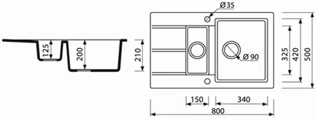 Габариты мойки (ШхГхВ) 80х50х21 см