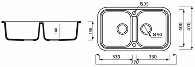 Габариты мойки (ШхГхВ) 77х47х19 см