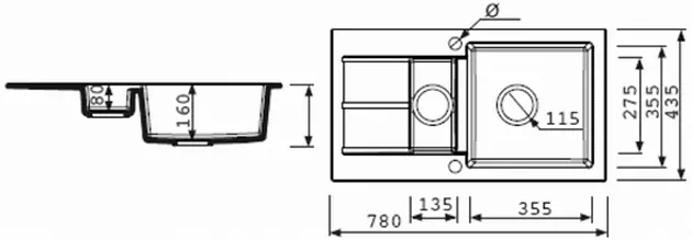 Размеры мойки (ШхГхВ) 78x43,5x17 см Размеры чаши (ШхГхВ) 35,5x35,5x16 см Материал гранит Сифон входит в комплект поставки Отверстие под смеситель есть Минимальная ширина шкафа 60 см Форма прямоугольная Тип установки врезной
