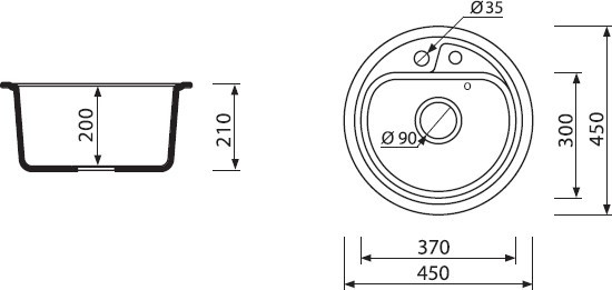 Размер монтажного отверстия под мойку (ШхГ) 37x30 см