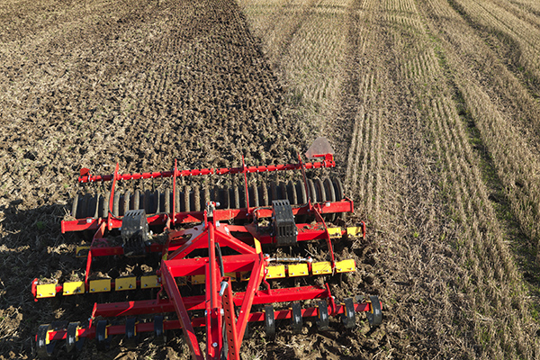Диски имеют Х-образное расположение, это уменьшает перекрытия и позволяет силам бокового смещения компенсировать  друг друга, в результате – исключительно ровный ход за трактором, что особенно важно при использовании GPS управления, а также является большим преимуществом на неровных полях.