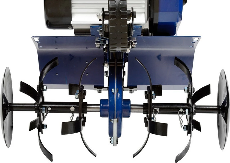 Новая система с усиленным сошником и универсальным разъемом для крепления навесного оборудования позволяет без труда выбрать необходимую глубину вспашки. Наряду с этим все навесное оборудование является унифицированным для всех моделей культиваторов.