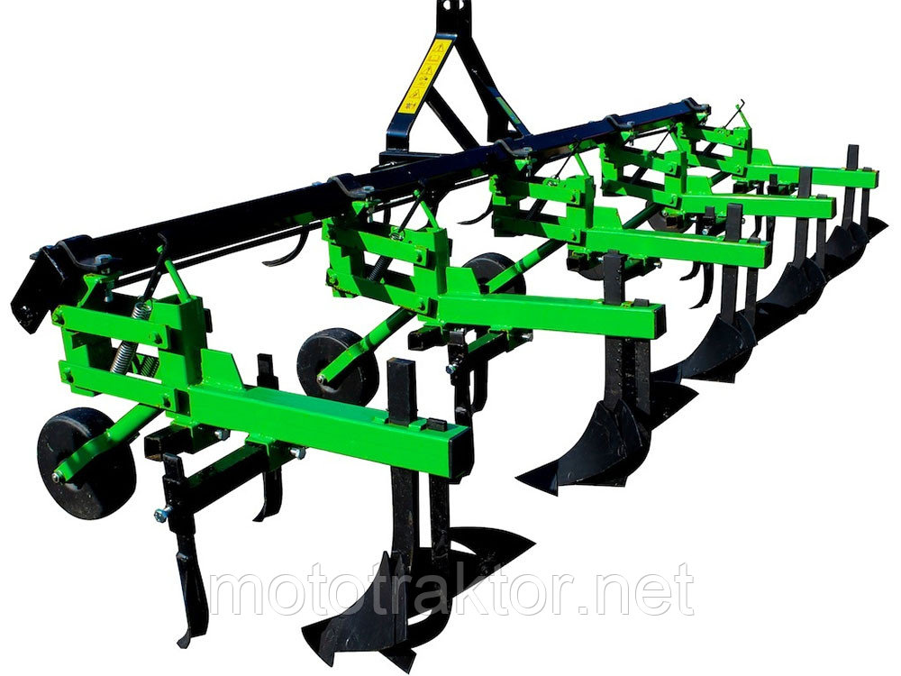 В комплект культиватора входит окучники и полольники, которые меняются местами в ручную по необходимости. По бокам каждого ряда установлены долота.