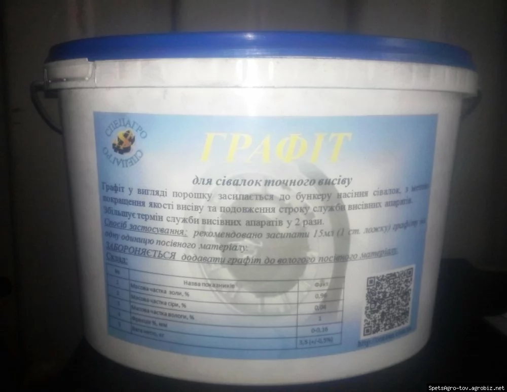 В виде порошка применяеться для засыпки в бункера сеялок для предотвращения слипания семян и прилепания их к корпусу бункера, увеличивает срок службы высевающих аппаратов в два и более раза.