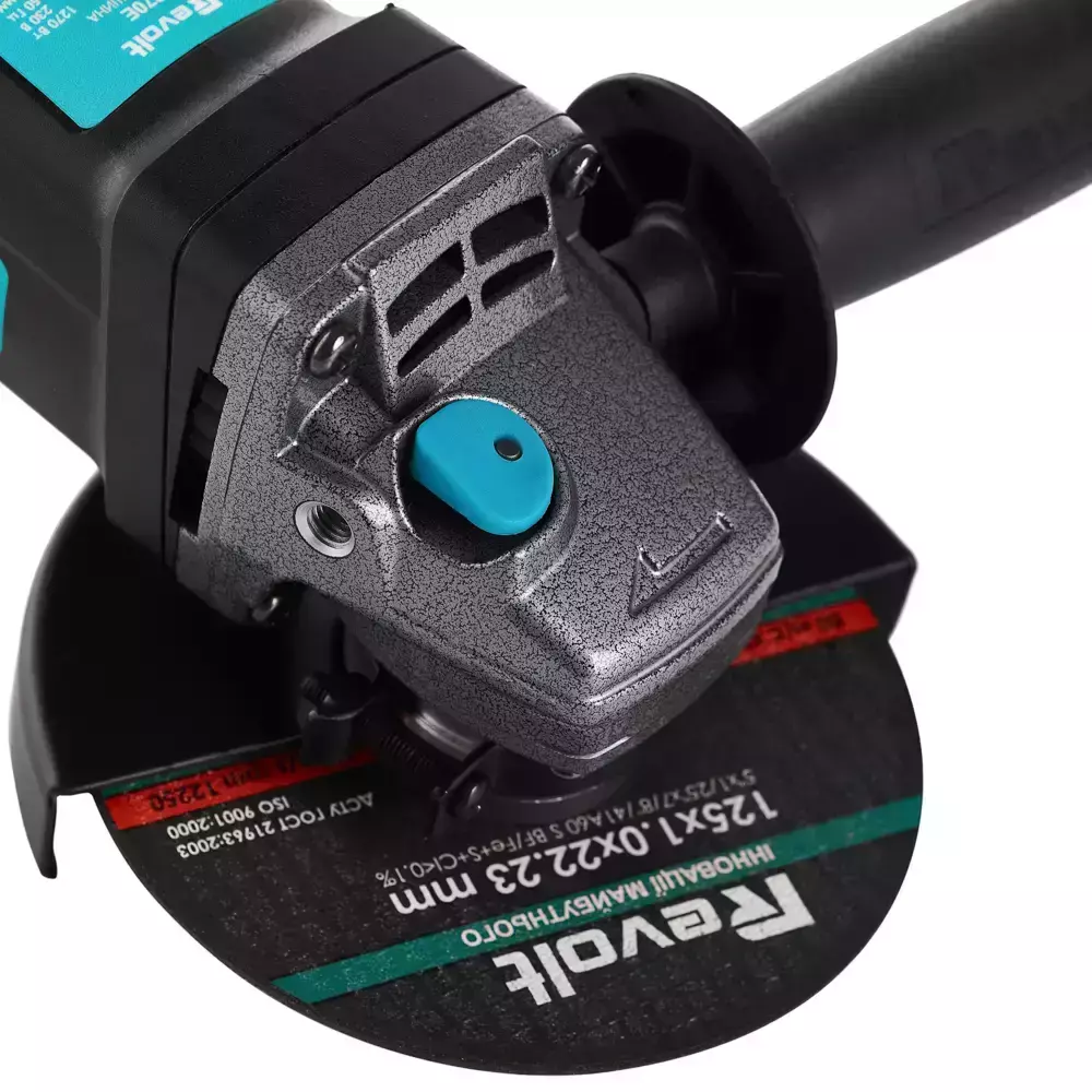 Revolt AG 125-1400CE обладнана потужним двигуном і константною електронікою, посиленою системою захисту від пилу, вузькопрофільним корпусом редуктора. Регулятор обертів дозволяє використовувати дану модель для високопродуктивної роботи. Модель має термостійкий і ударостійкий корпус, що додає надійність і комфорт при роботі. Передня рукоятка має можливість встановлюватися в одне з двох отворів в корпусі редуктора зі сплаву з високою теплопровідністю.