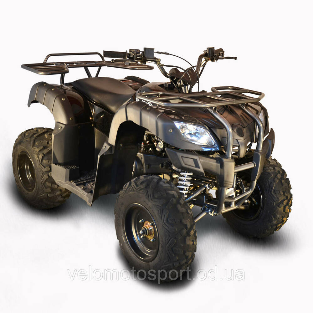 Квадроцикл Skybike HYPER-150 куб. - небольшой одноместный утилитарный квадроцикл. Одноцилиндровый четырехтактный двигатель с объемом 149.6 куб.см. расходует около 3.5 литров горючего на 100 километров пути. Передний и задний дисковые тормоза, багажники из металлической дуги, передний кенгурятник для защиты фар и пластиковых обтекателей. Характеристики: