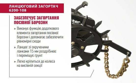 - Виконує фунцію додаткового елементу загортання посівної борозди