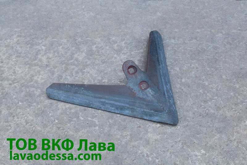 Лапа культиватора КПС 5,5 (330 мм) (Одесский крой) ― применяется на культиваторе КПС-4, служит для подрезания сорняков и крошения пласта почвы. Крепится к стойке болтами ПМ 10*40-45.