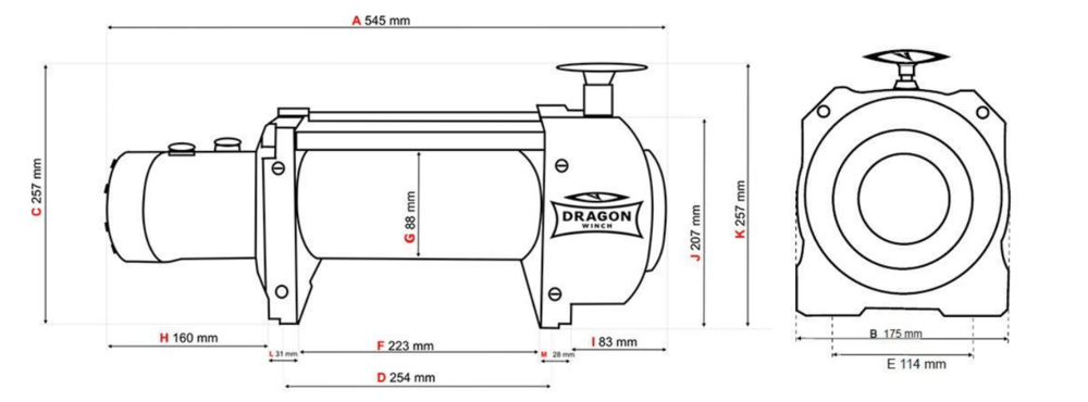 | C | Высота от основания до самой верхней точки лебедки | 257 мм |