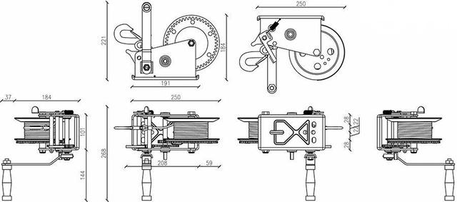 Лебедка компактна и удобна в эксплуатации. Её конструкция выполнена из высококачественной стали, покрытой порошковой краской с антикоррозийными свойствами. В комплект поставки входит барабанный механизм с рукоятью, устойчивой к высоким нагрузкам, тормозная система, фиксатор и металлический трос длиной 10 метров и диаметром 6 мм.
