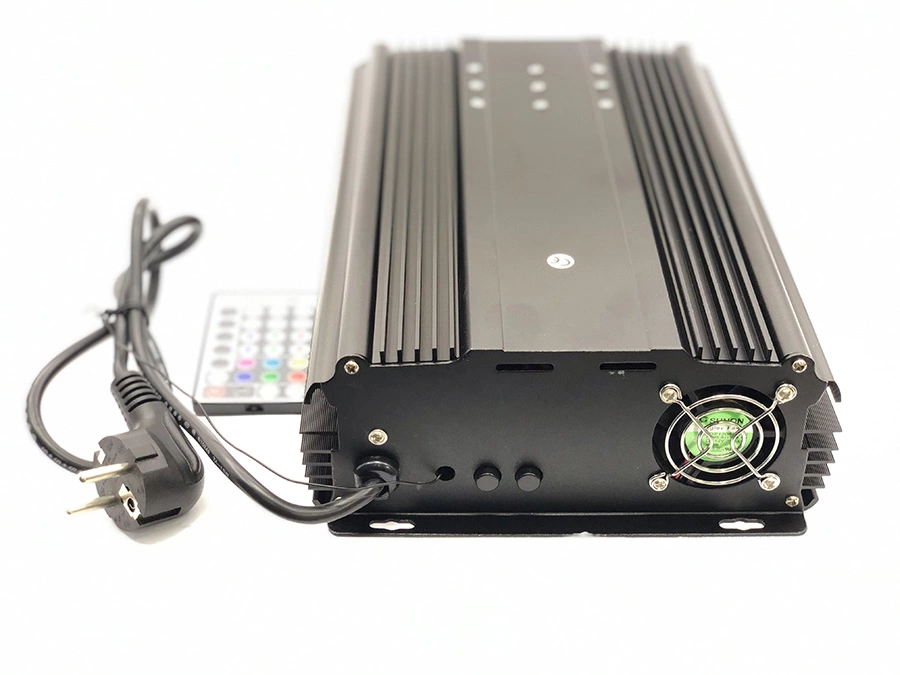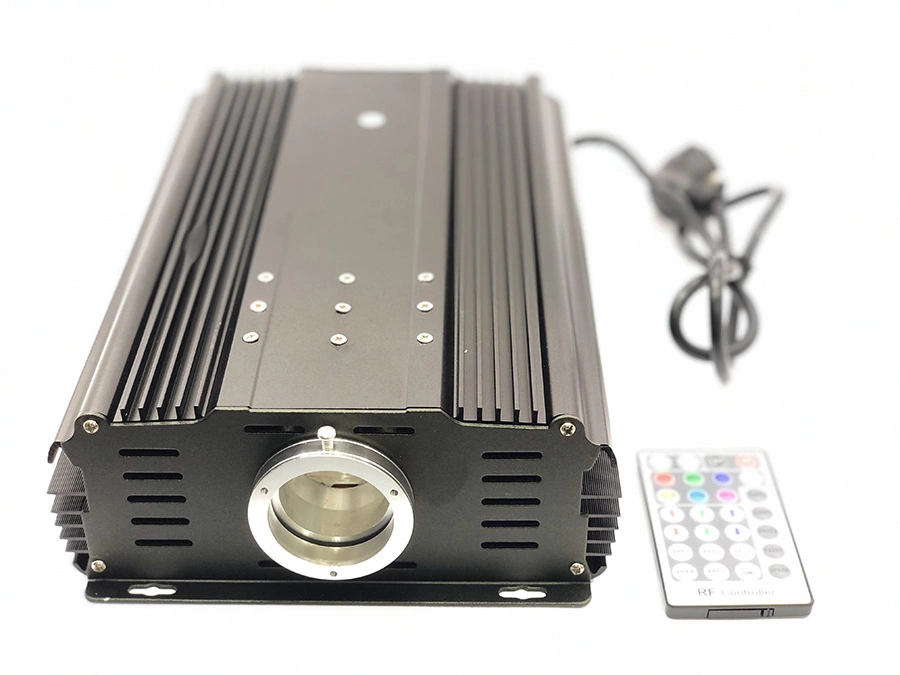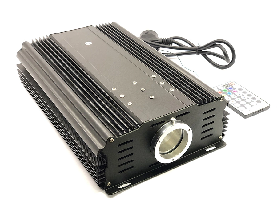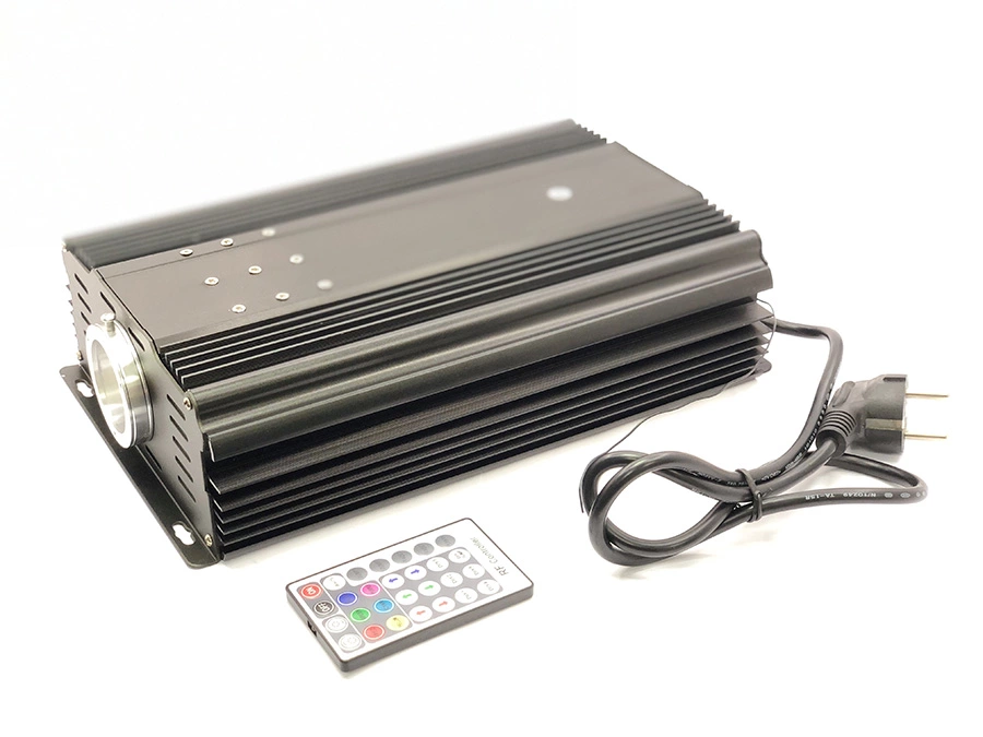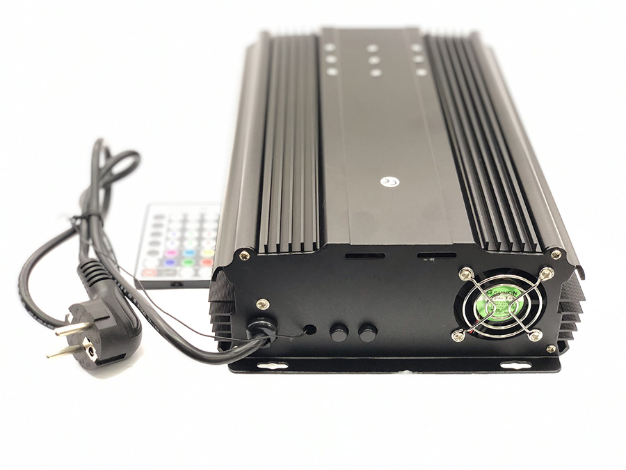 Cветогенератор для оптоволокна 75W LED RGBW имеет возможность менять цветовую гамму по вашему вкусу и желанию. Переключение цвета, изменение яркости свечения и другие функции возможны благодаря дистанционному пульту управления что прилагается в комплекте.