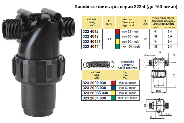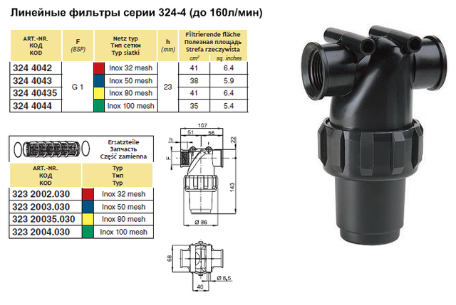 3232002.030 - Сітка фільтра 38х122 мм #32 червоний (рідкий)