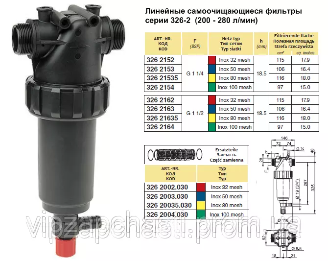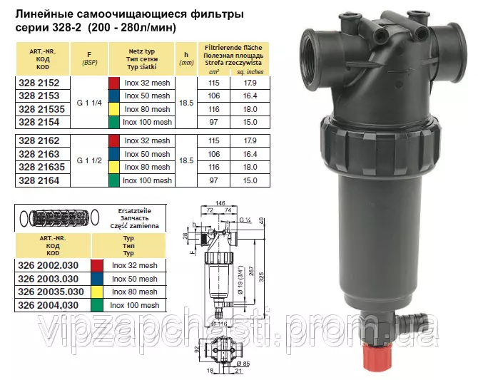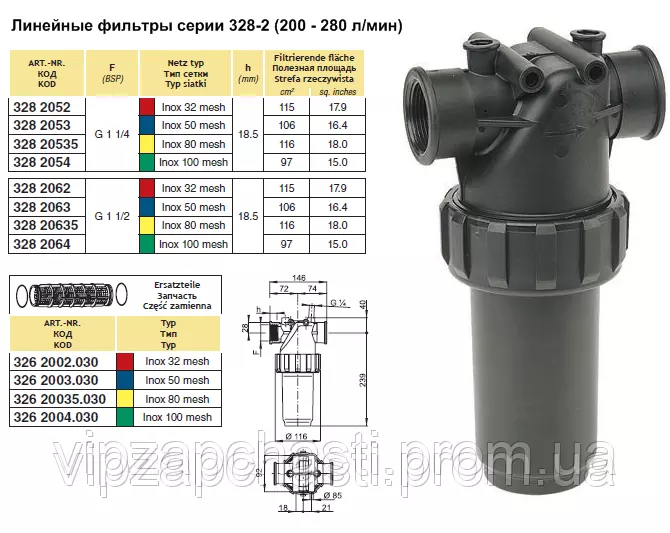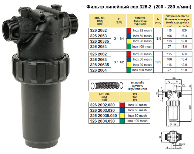 Линейный фильтр до 280л/мин (резьба 1" 1/2) Arag, 3262063