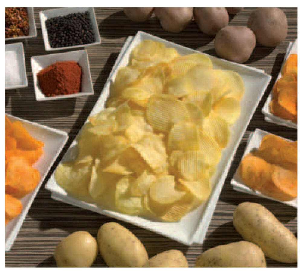 Обычно чипсы имеют плоскую форму, но наши производственные линии также могут изготовлять гофрированные и клиновидные чипсы от 100 до 3000 кг/ч и быть разработаны с учетом всех индивидуальных требований клиента.