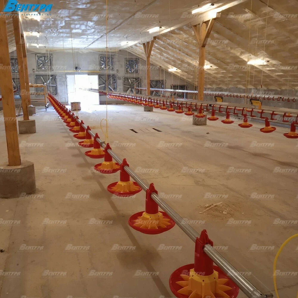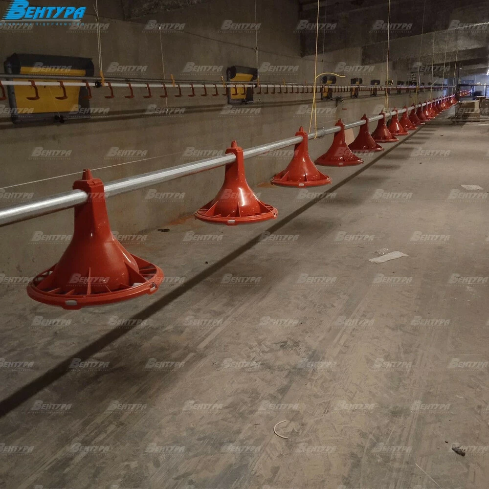 Линия кормления предназначена для откорма птицы от суточного цыпленка до убоя. Мы проецируем системы кормления индивидуально под каждый заказ, чтобы учесть размеры помещения и оптимизировать систему под количество поголовья.