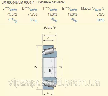 LM603049 / LM603011 подшипник