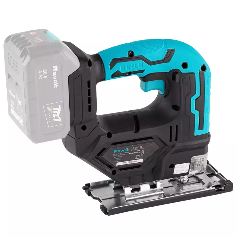 Лобзик акумуляторний Revolt JS 20/135 (без акумуляторів) серії М1, що дозволяє використовувати лобзик з акумуляторами Makita — простий і зручний в експлуатації, надійний і продуктивний інструмент.