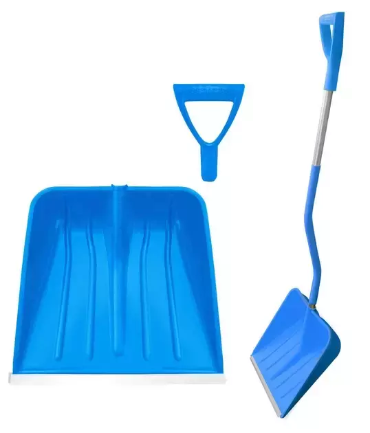 Лопата снігоприбиральна в зборі Budmonster пласт.синя 400х400мм з ал.наконечником, ал.черенком та ручкою