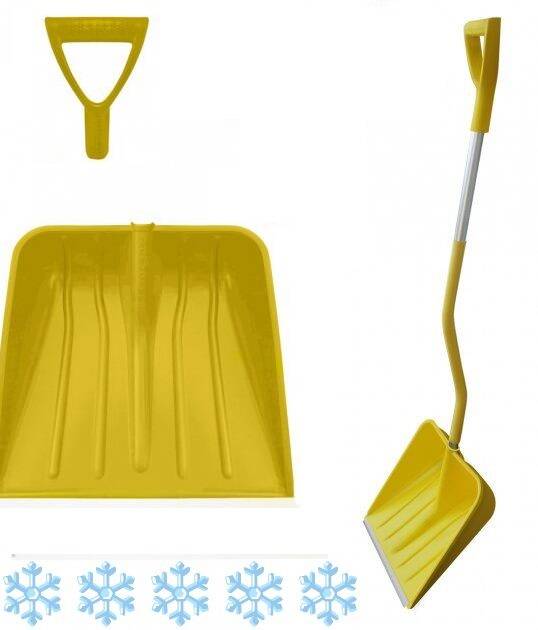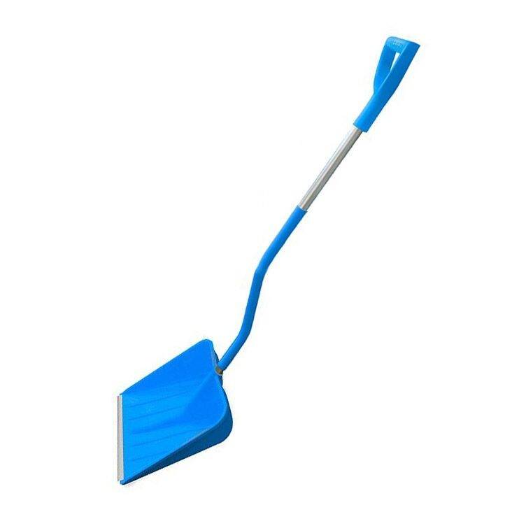Виготовлена з морозостійкого пластика (пластичність, міцність, довговічність). Відсутність деформації при всіляких механічних навантаженнях. Захисна металева планка виготовлена з алюмінієвої сталі, яка зменшує знос робочої частини лопати. Ергономічний держак мінімізує кут нахилу м'язів спини і плечового напруги. Правильна геометрія ковша з бічною підтримкою вантажу. Глибокий ківш. V-подібна ручка. Багатофункціональне застосування: сніг/с-г продукція/ будівельні суміші/суспензії.