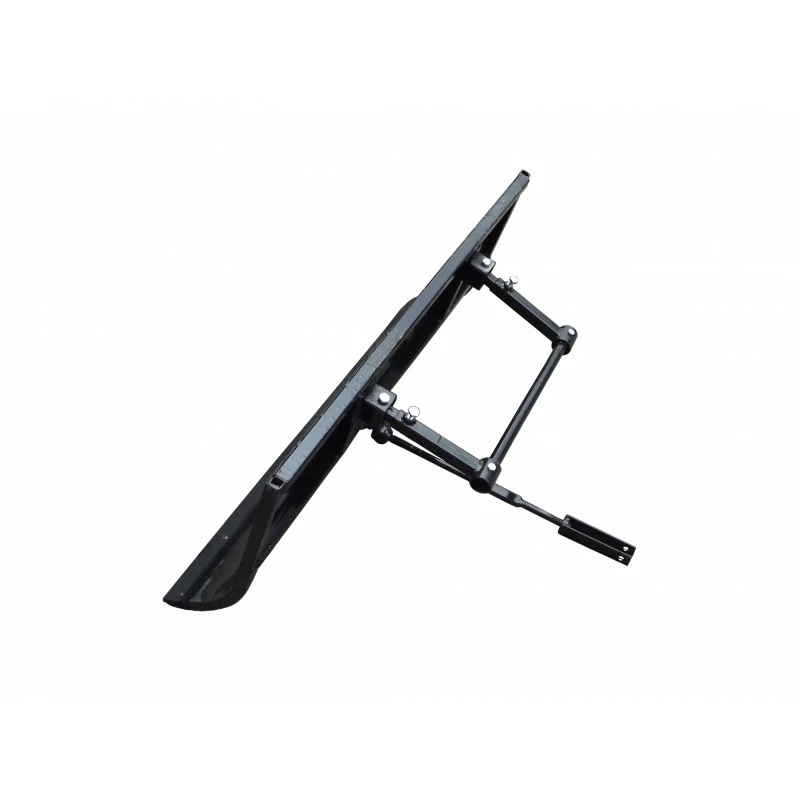 Прицепной узел позволяет выставить положение устройства относительно продольной оси мотоблока или мототрактора в трех положениях – перпендикулярно, повёрнут вправо, повёрнут влево. Поворот лопаты-отвала даёт возможность отводить снежные массы в нужную сторону.