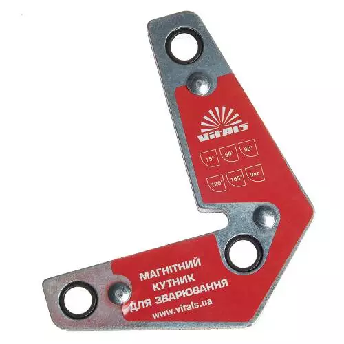 Магнітний кутник для зварювання Vitals CM 9 кг призначений для точної фіксації деталей під кутами 15°, 60°, 90°, 120°, 165° у зварювальних роботах, паянні та інших операціях під час виготовлення металоконструкцій зі сталі.