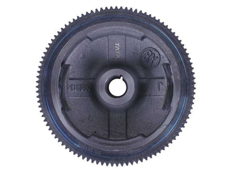 Центральная часть и обод маховика изготовлены из чугуна. Зубчатый венец изготовлен из стали.