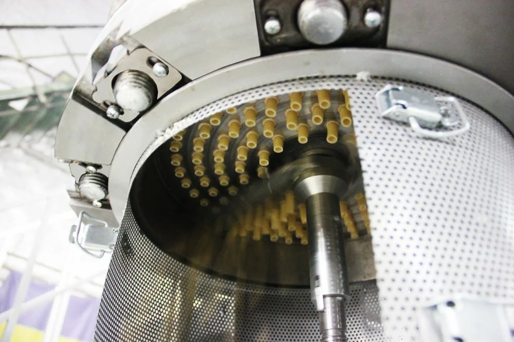Мука после просеивания подается в пресс, где смешивается с водой в