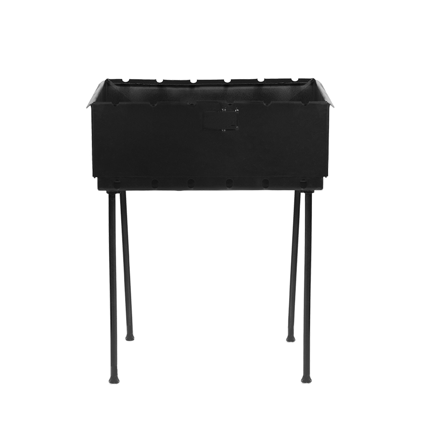 Складывается в виде чемодана с ручкой для транспортировки и съемными ножками для установки на земле.. В сложенном виде мангал чемодан не займет много места – его толщина всего 30 мм и вес – 6 кг.