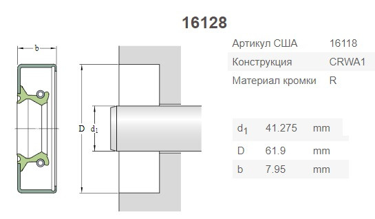 Манжета 16128 41.2x61.9x7.9 Кільце ущільнююче ступиці 816-009C, 16118