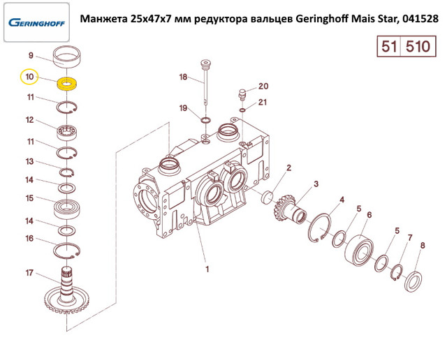 Манжета 25x47x7 мм редуктора вальцев Geringhoff Mais Star SC, 041528