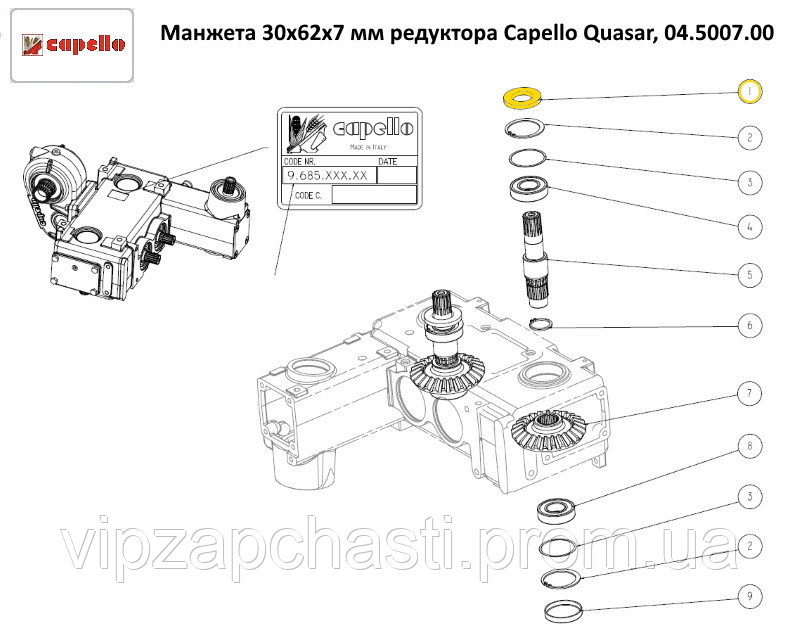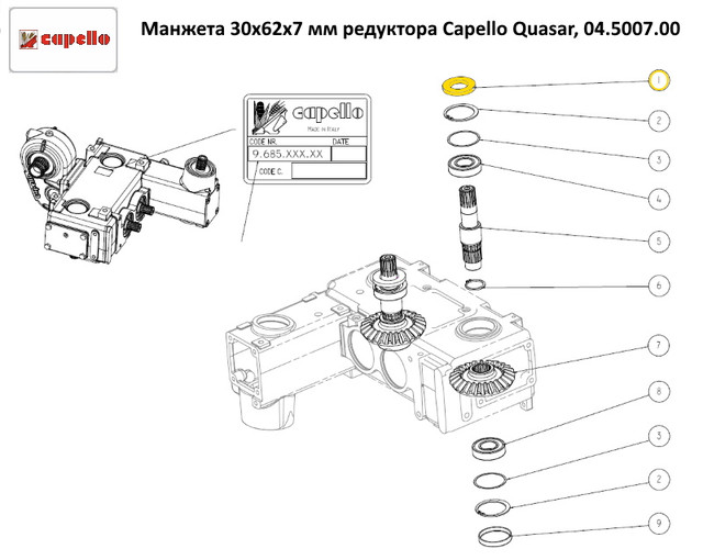 Манжета 30х62х7 мм редуктора Capello Quasar, 04.5007.00