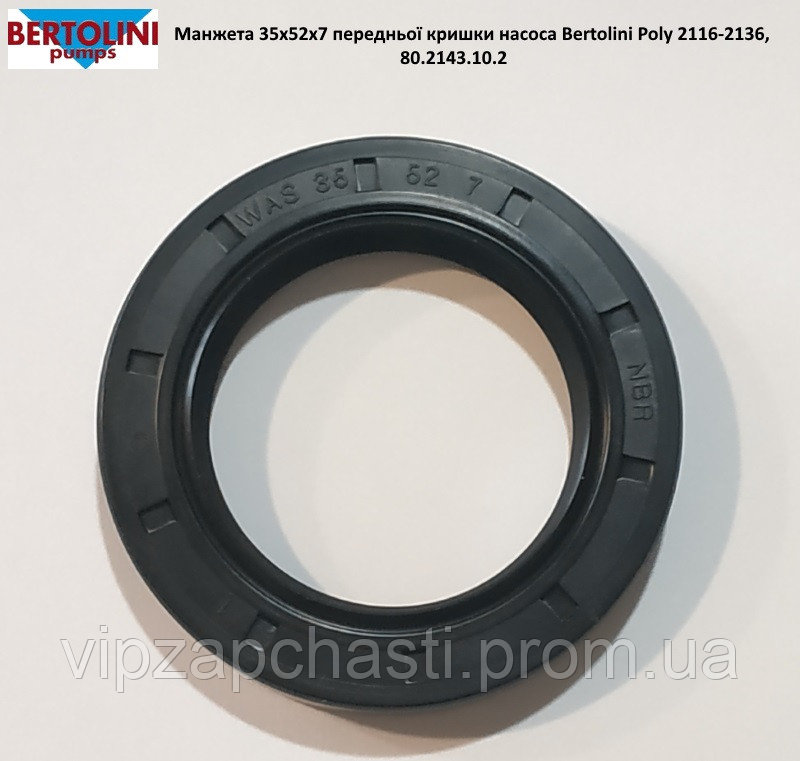 Манжета 35х52х7 передньої кришки насоса Bertolini Poly 2116-2136, 80 2143 10 2