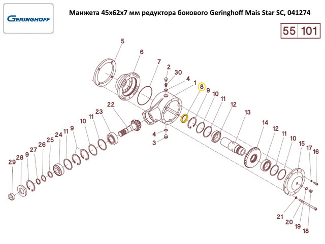 Манжета 45x62x7 мм редуктора бокового Geringhoff Mais Star SC, 041274