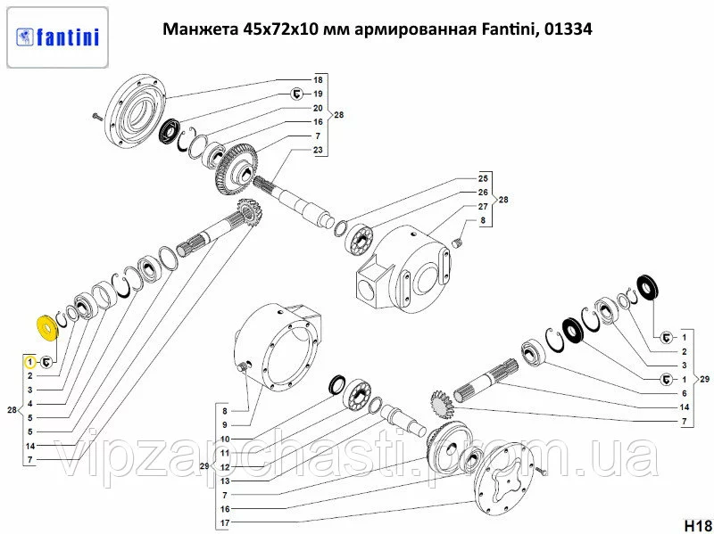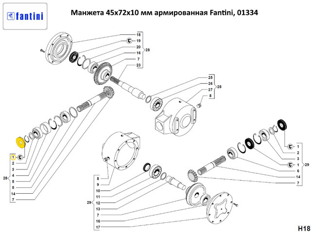 Сальник 45x72x10 мм редуктора Fantini, 01334