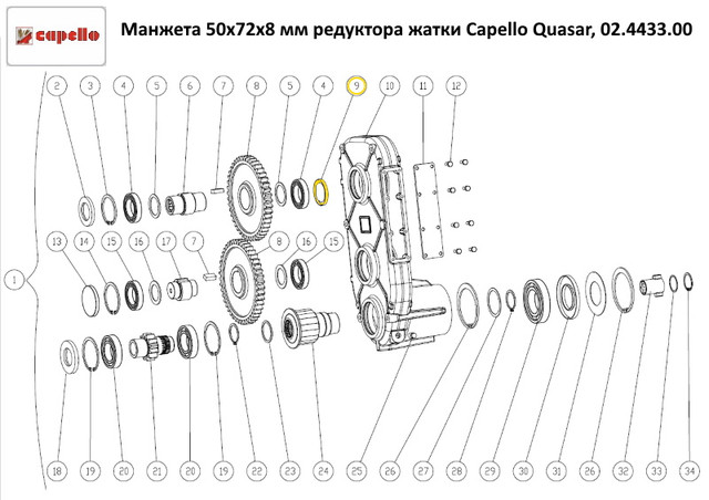 Манжета 50х72х8 мм редуктора жатки Capello Quasar, 02.4433.00