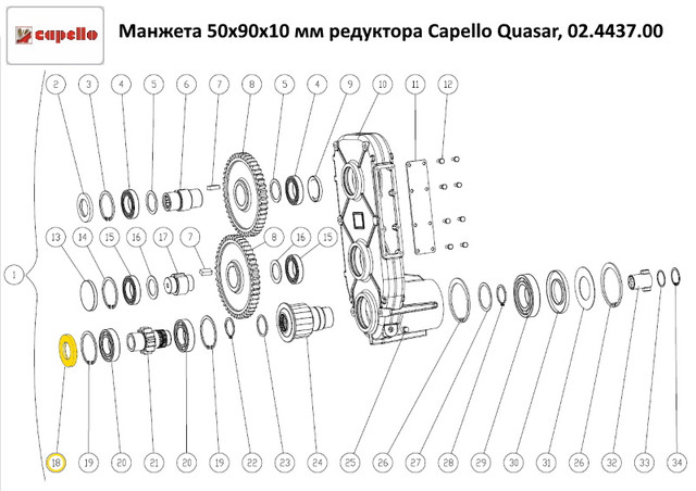 Манжета 50х90х10 мм редуктора Capello Quasar, 02.4437.00