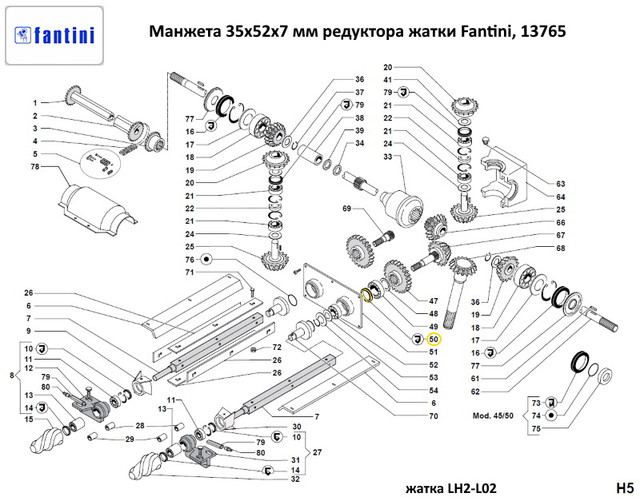Сальник 35x52x7 мм редуктора кукурузной жатки Fantini, 13765