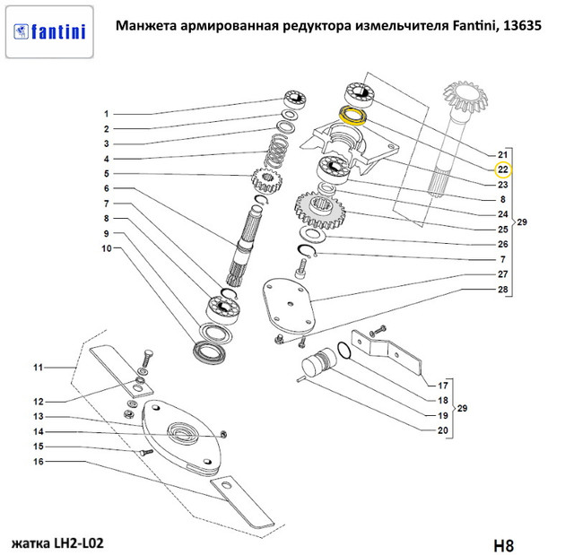 Манжета армированная 35x62x7 мм редуктора измельчителя Fantini, 13635